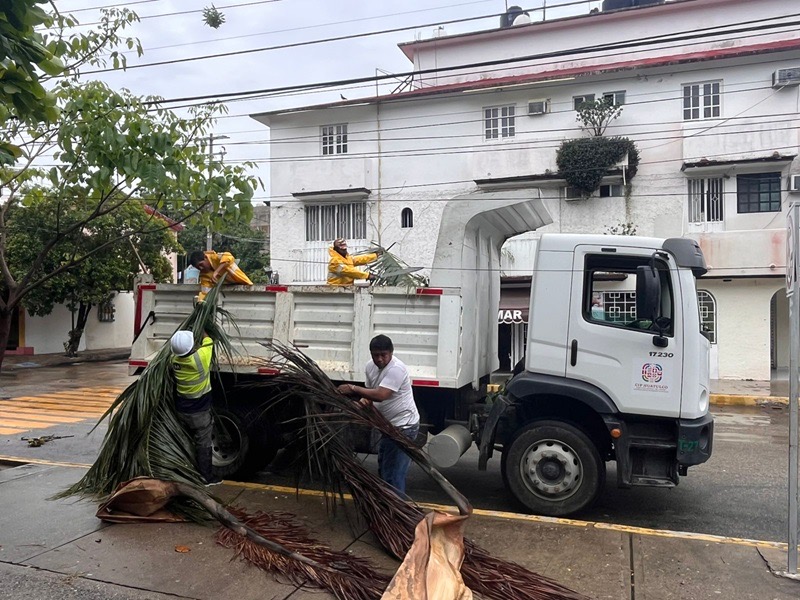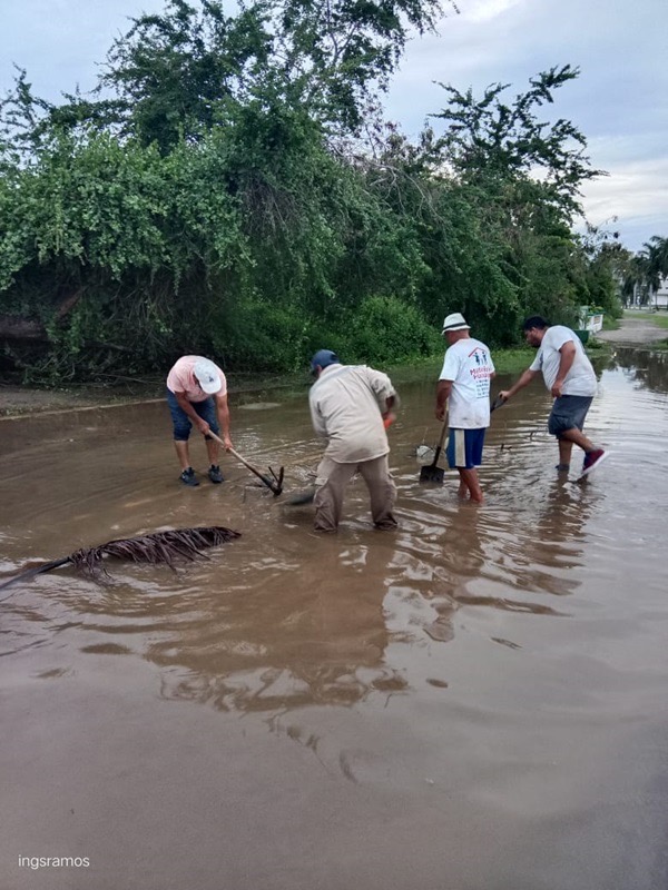 De esta manera, Lavariega Arista informó que, una vez que la Comisión Federal de Electricidad (CFE) confirmó la ausencia de riesgo por cables electrificados en la vía pública; el personal operativo de servicios generales procedió a realizar labores de limpieza, retirando lodo y residuos sólidos que obstruían el flujo del agua pluvial hacia la red de drenaje.