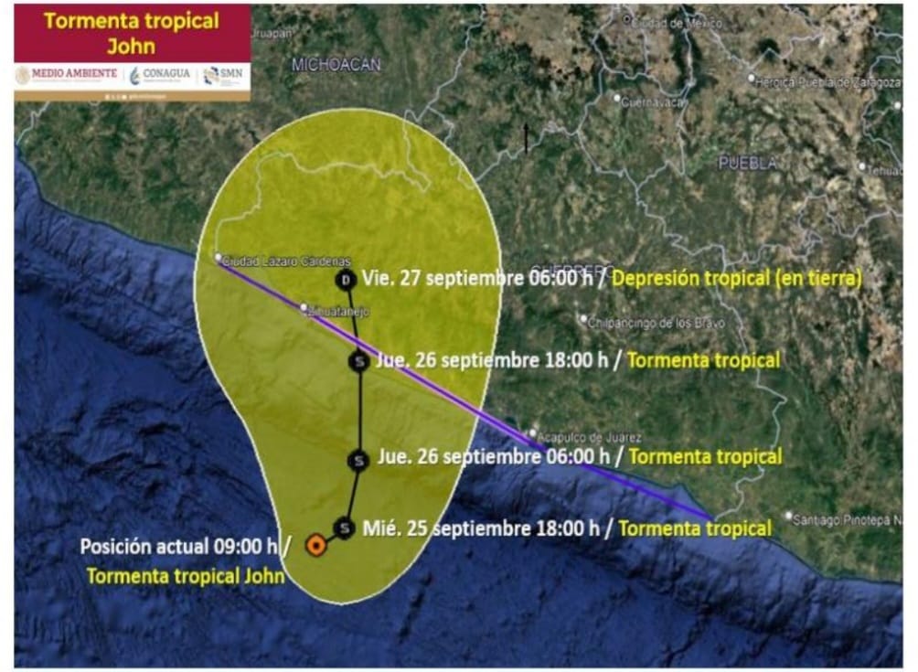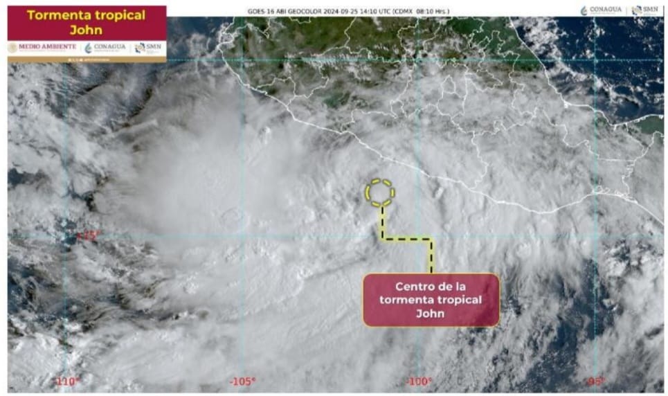 Oaxaca de Juárez, Oax. 25 de septiembre de 2024.- El Consejo Estatal de Protección Civil informa que la tormenta tropical John se regeneró frente a las Costas de Guerrero, manteniendo en alertamiento máximo por lluvias a las regiones del Istmo de Tehuantepec, Costa, Sierra Sur, Sierra de Juárez, Mixteca y Valles Centrales.