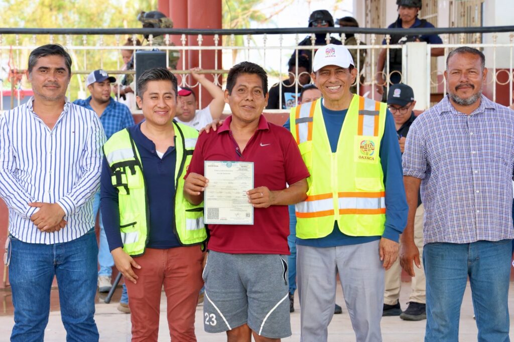 En este recorrido, el Gobernador de Oaxaca continúo con la entrega de actas de nacimiento y sillas de ruedas para quienes resultaron afectados.