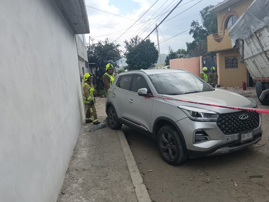En la calle Peralvillo de la Tercera Sección, un tráiler cargado de maíz se quedó sin frenos, estampándose en una casa y chocando a su paso con tres vehículos más.