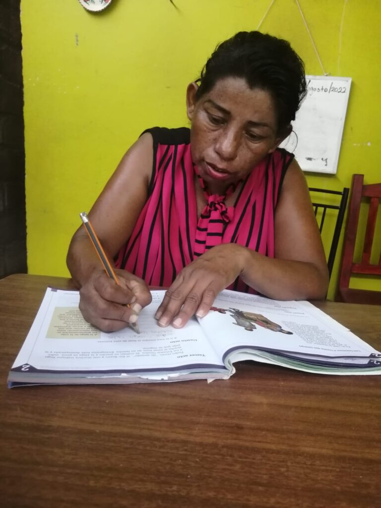 Tres días a la semana, Sandra se divide entre el trabajo y sus asesorías, en el círculo de estudio ubicado en la colonia Hugo Mayoral, en Salina Cruz, con el apoyo de la Coordinación de Zona 2005, Tehuantepec, donde puede reforzar los conocimientos adquiridos.